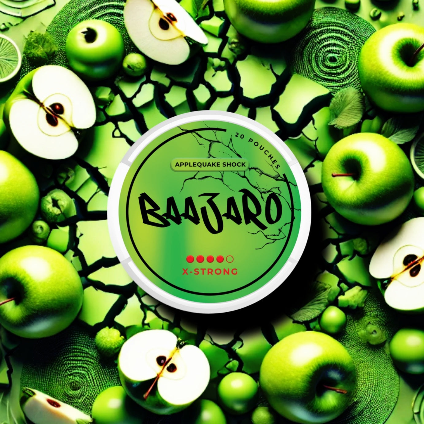 Brace yourself for a seismic blast of green apple aroma— sour-sweet, razor sharp, and charged with raw intensity. Applequake Shock erupts surrounding with crisp clarity, then surges into an icy undertow that rattles your senses. It’s bold, electric, and relentless — like living in the middle of a frozen fruit grenade.